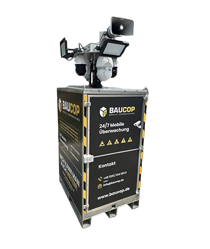 Der BAUCOP 6 ist Ihr leistungsstarker Überwachungsturm für Baustellenüberwachung, Lagerflächen, Events, Solarparks, Recyclinghöfe und viele weitere Einsatzbereiche. Das mobile Videoüberwachungssystem kombiniert modernste Technik mit maximaler Flexibilität – ideal für temporäre Sicherheitslösungen.